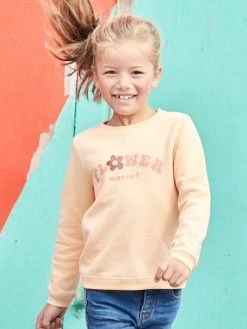 Sweat Ă Volants En Maille Nid D’abeille Fille Abricot – Vertbaudet
