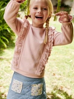Sweat Ă Volants BrodĂ©s Fleurs Fille Rose PoudrĂ© – Vertbaudet