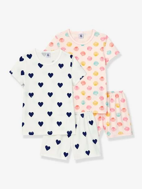 Lot de 2 pyjacourts cœurs et coquillages PETIT BATEAU en coton.